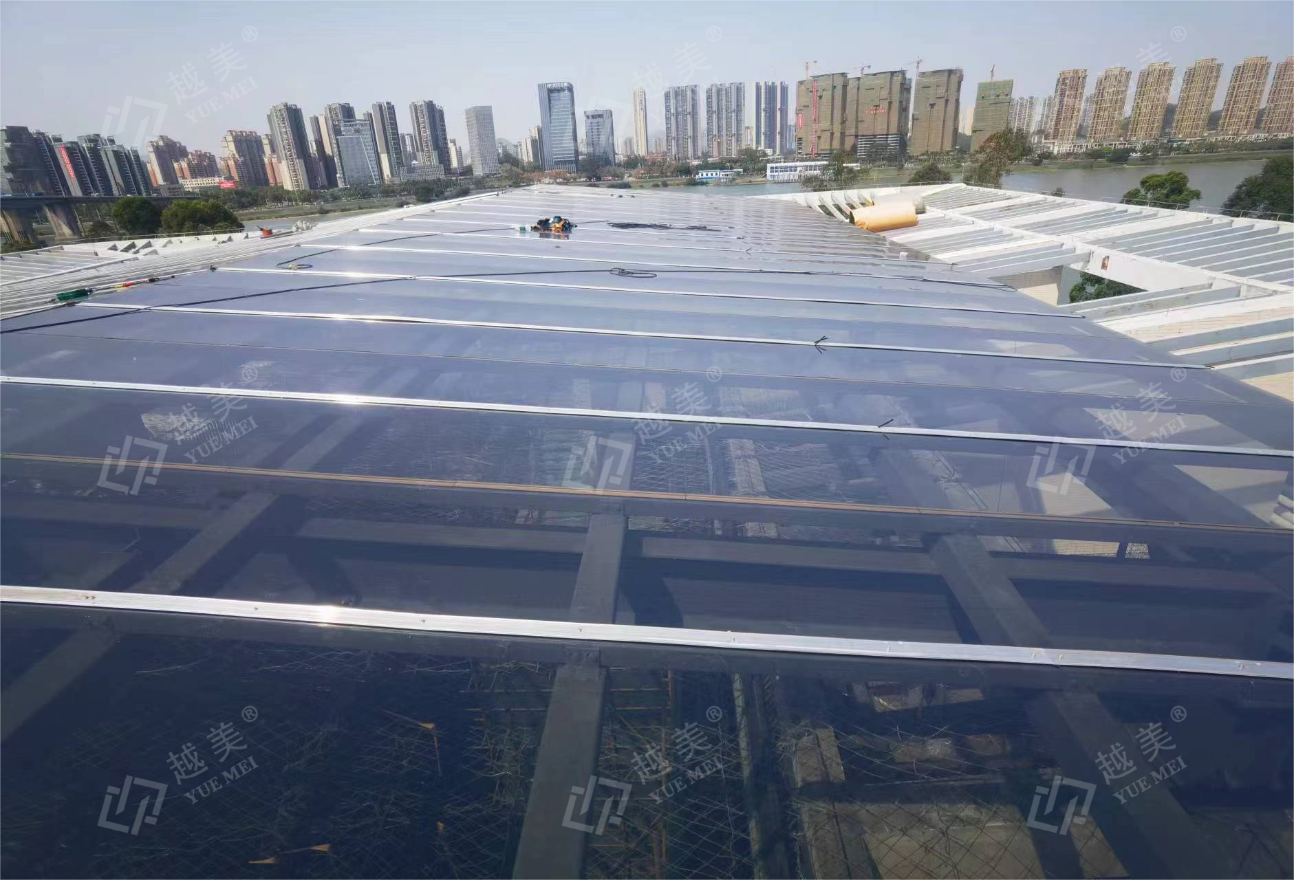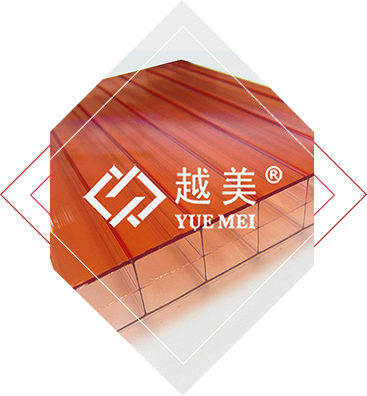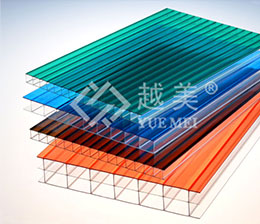 越美牌PC双色阳光板是中空板的一种特殊产品,该产品外观特殊,分为上下两种颜色,室内重新营造另外一种色调氛围