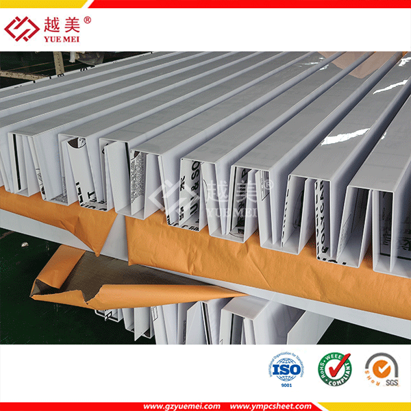 越美PC波浪板是由进口全新料聚碳酸酯(PC)树脂工程塑料为主要原料,并加入抗紫外线UV和其他化工原料采用当今的.....